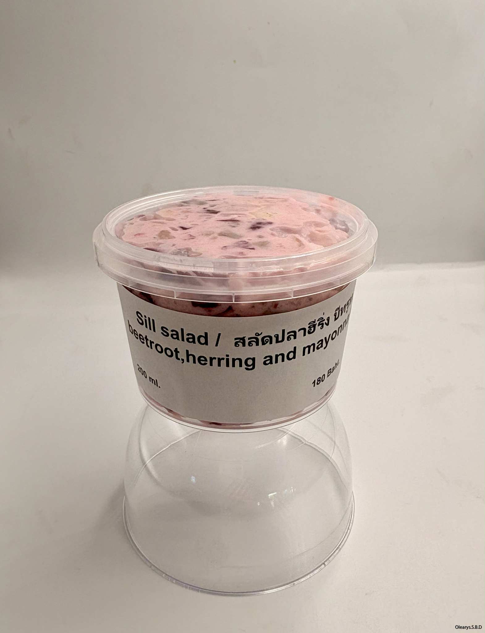 สลัดปลาเฮร์ริ่งสไตล์สวีเดนแบบดั้งเดิม ทำจากปลาเฮร์ริ่งหั่นชิ้น บีทรูท แอปเปิ้ล และมายองเนสเนื้อครีม รสชาติเข้มข้น สีสันสวยงาม เหมาะสำหรับโต๊ะคริสต์มาส บุฟเฟต์ หรือทาขนมปัง